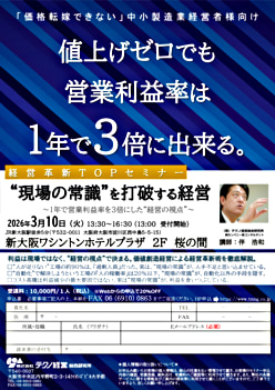 ~ 値上げゼロでも営業利益率は1年で3倍に出来る。 ~