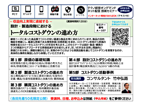 このセミナーでは設計・製造・購買の3つの側面からアプローチする原価低減手法を紹介します。