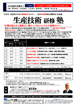 数多くの工場計画と製品の生産体制構築に携わってきた講師の言葉・・「工場計画は生産技術の総合力である」。今後のモノづくりを支える生産技術者育成の核心に迫る6回コース。