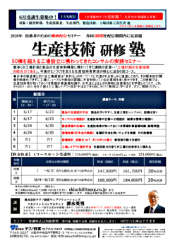 数多くの工場計画と製品の生産体制構築に携わってきた講師の言葉・・「工場計画は生産技術の総合力である」。今後のモノづくりを支える生産技術者育成の核心に迫る6回コース。