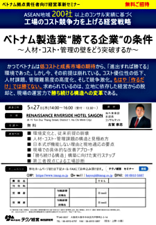 かつてベトナムは低コストと成長市場の期待から、「進出すれば勝てる」 環境であった。しかし今、その前提は崩れている。コスト優位性の低下、人材課題、管理難易度の高度化、そして競争激化。もはや 「作るだけ」 では勝てない。求められているのは、立地に依存した経営からの脱却と、現場の運営力で勝ち続ける構造への変革である。