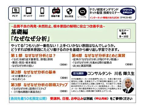~ 品質不良の再発・未然防止、根本要因の解明に役立つ改善手法 ~